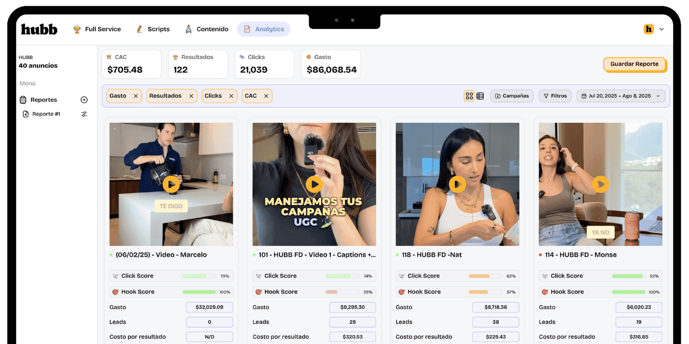 Scripts cortos con hooks directos, beneficios claros y CTA específicos, listos para Meta/TikTok/YouTube